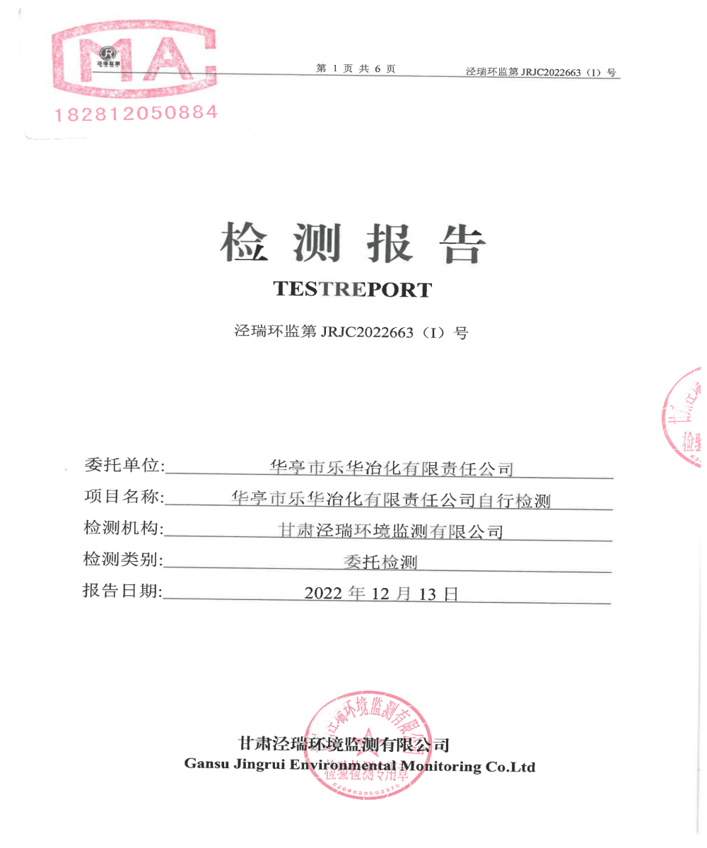 華亭市樂華冶化有限責任公司自行檢測報告